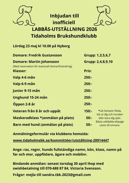Anmäl er via QR-kod till respektive dag (finns längst ner på. Plus anmälan till Tidaholms BK's Utbildningskommitté om du är instruktör eller vill använda Bonustimmar - tidaholmsbrukshundklubb@gmail.com
